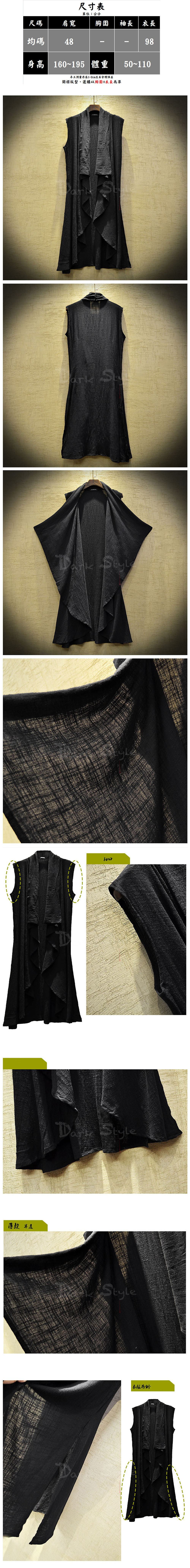 說明:開襟 / 垂墜領 / 無袖 / 側擺開叉 / 長罩衫