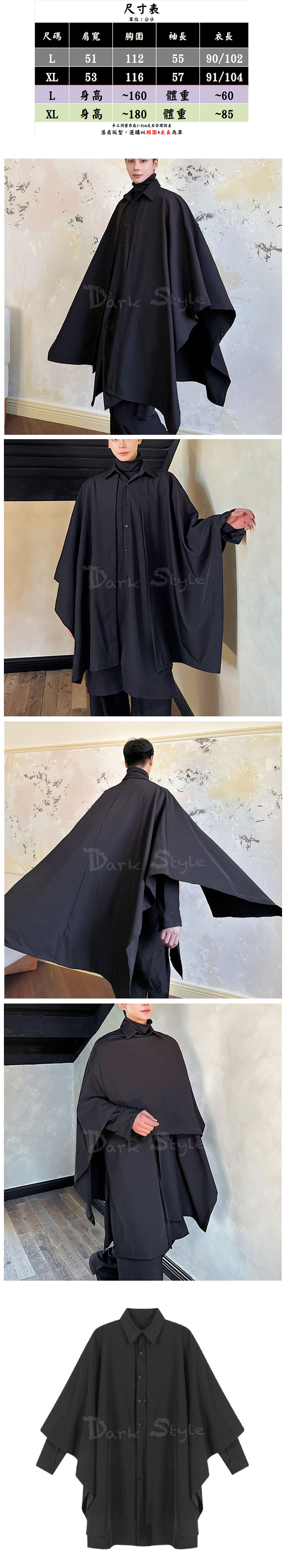 說明:襯衫領 / 內長袖襯衫 / 外一片式斗篷