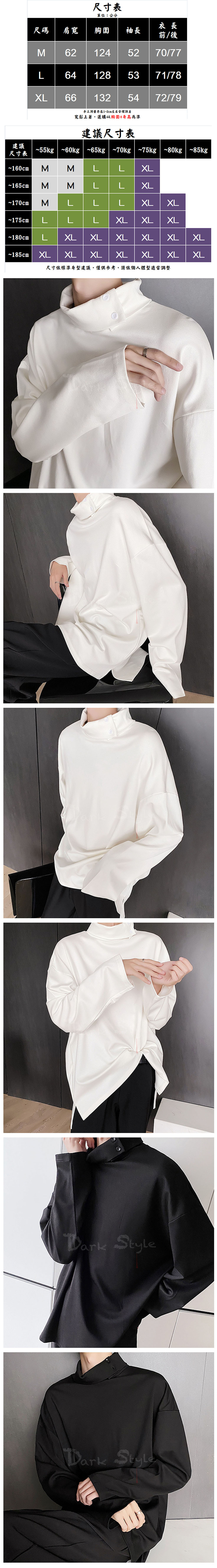 說明:中厚磅 / 圍領 / 過長袖 / 下擺前短後長 / 純色
