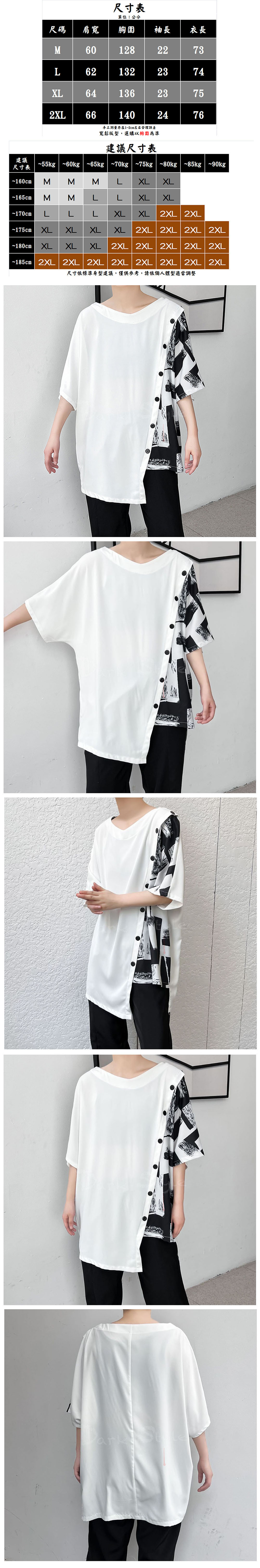 [解構拼布] 採用多片拼布與特殊領設計,加上不規則下擺,為短袖上著增添強烈的解構和層次感。透氣舒適。
